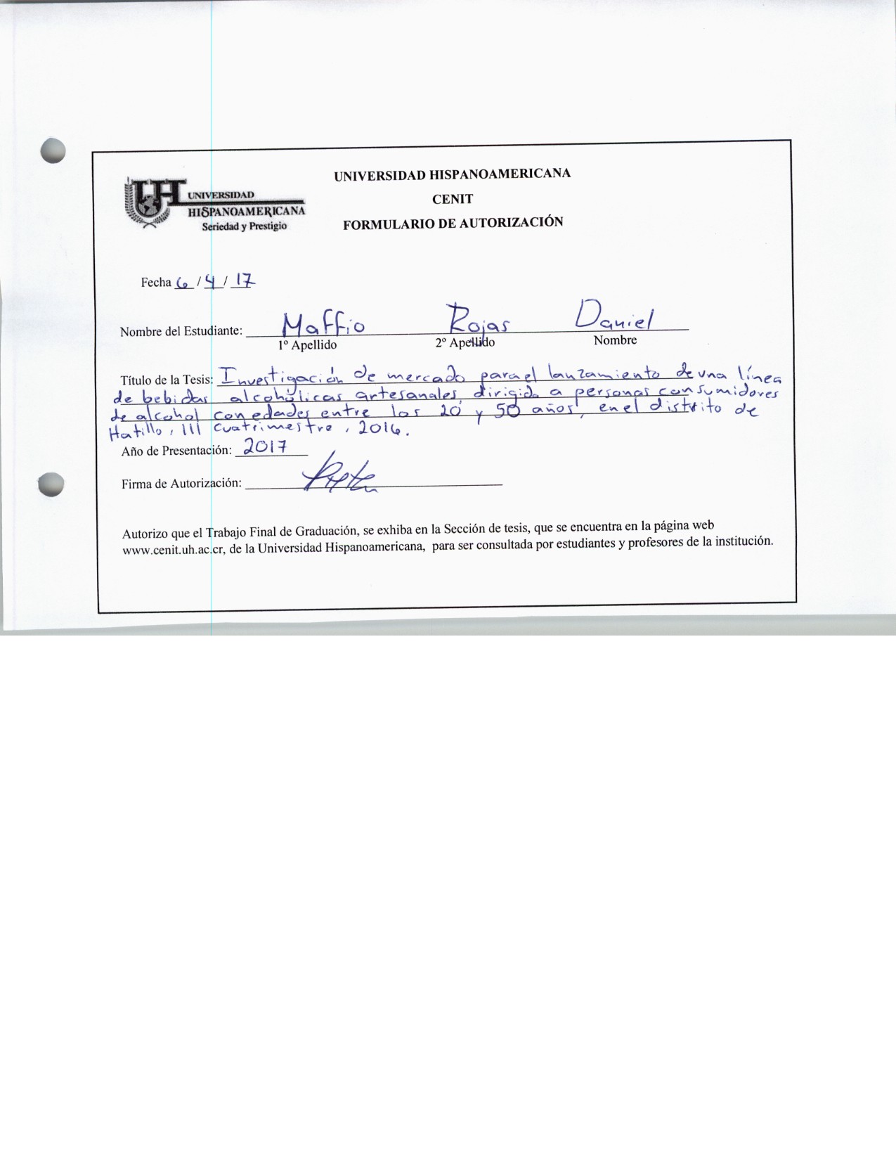 Investigación de mercado para el lanzamiento de una línea de bebidas alcohólicas artesanales, dirigido a personas consumidores de alcohol con edades entre los 20 y 50 años en el distrito de Hatillo, III cuatrimestre del 2016