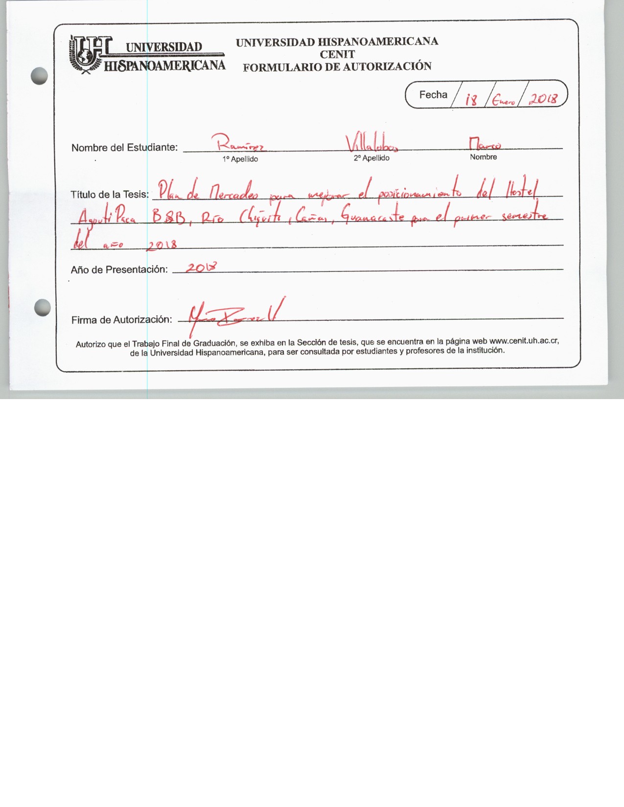Plan de mercadeo para mejorar el posicionamiento del Hostal Agouti Paca B&B, en Rio Chiquito, Cañas, Guanacaste para el primer semestre del año 2018