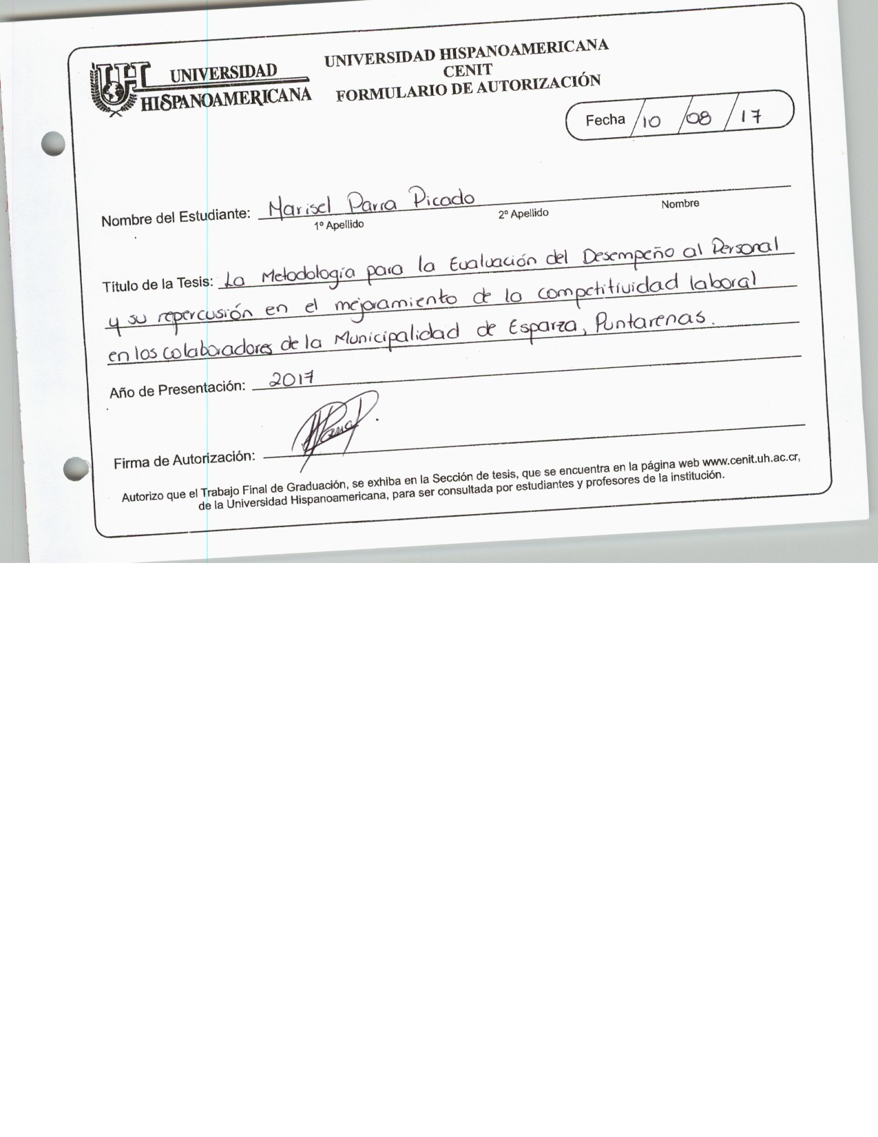 La metodología para la evaluación del desempeño del personal y su repercusión en el mejoramiento de la competetividad laboral en los colaboradores de la Municipalidad de Esparza, Puntarenas
