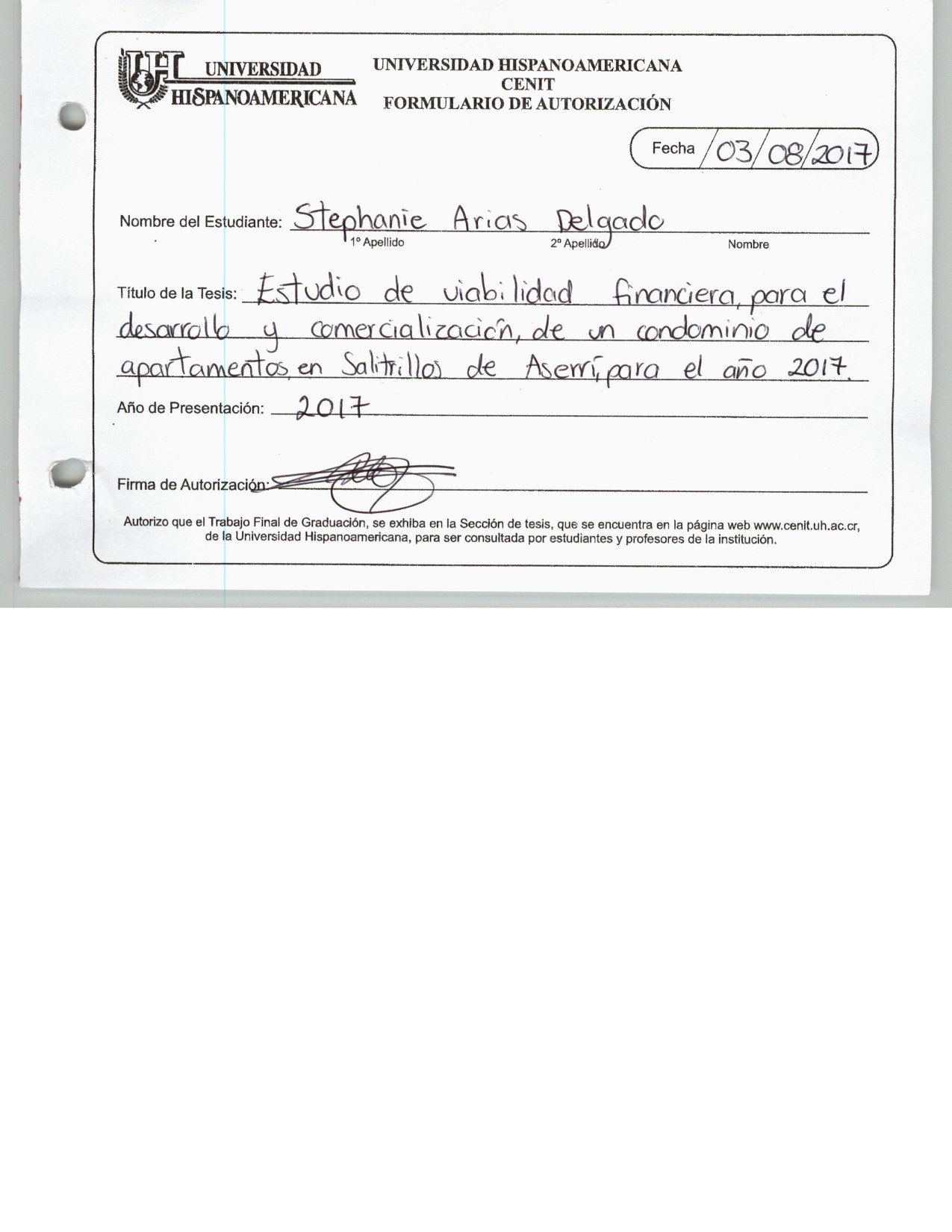 Estudio de viabilidad financiera para el desarrollo y comercialización de un condominio de apartamentos en Salitrillos, de Aserrí para el 2017