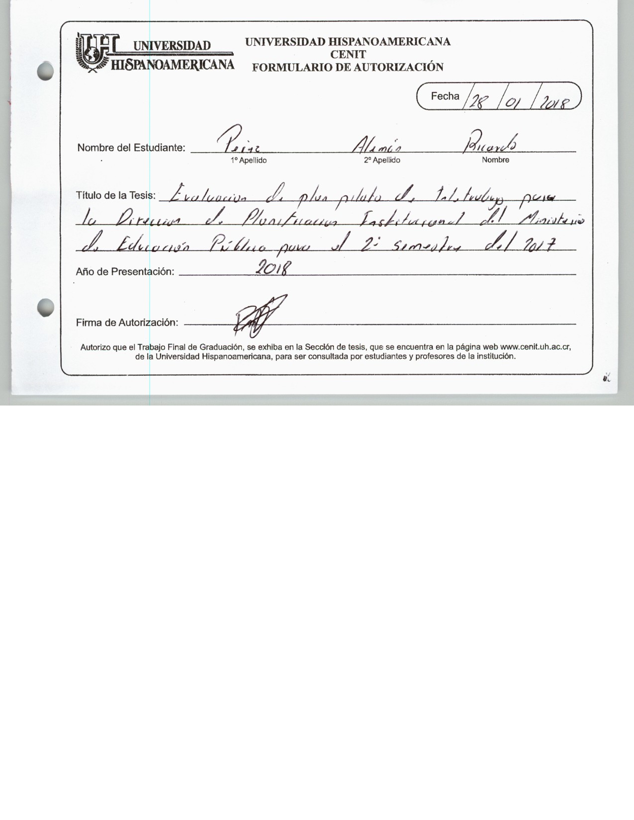 Evaluación de plan piloto de teletrabajo para la dirección de planificación institucional del Ministerio de Educación Pública para el segundo semestre del 2017