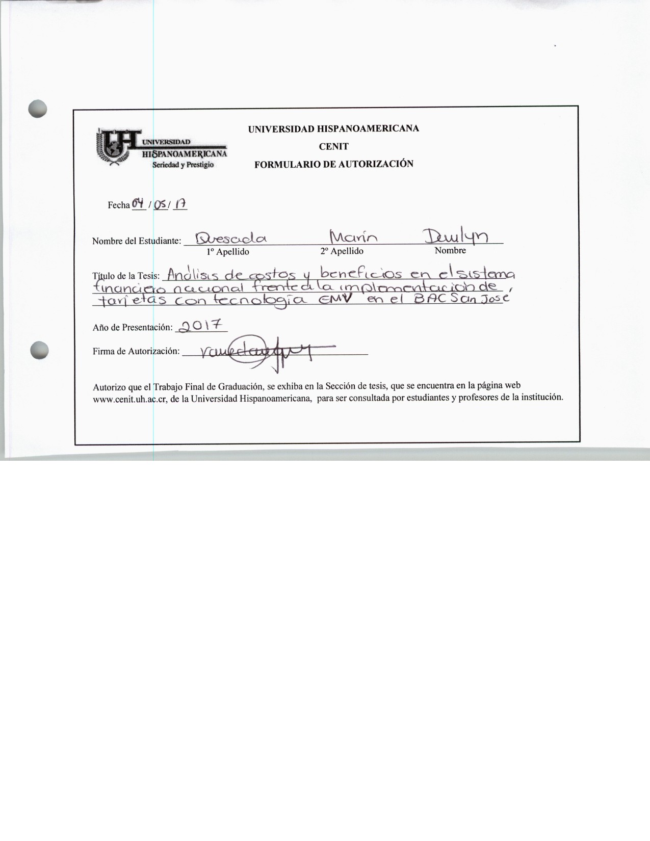 Análisis de costos y beneficios en el Sistema Financiero Nacional frente a la implementación de tarjetas con tecnología EMV Europa y MasterCard Visa. Enfocado en el BAC San José 2016