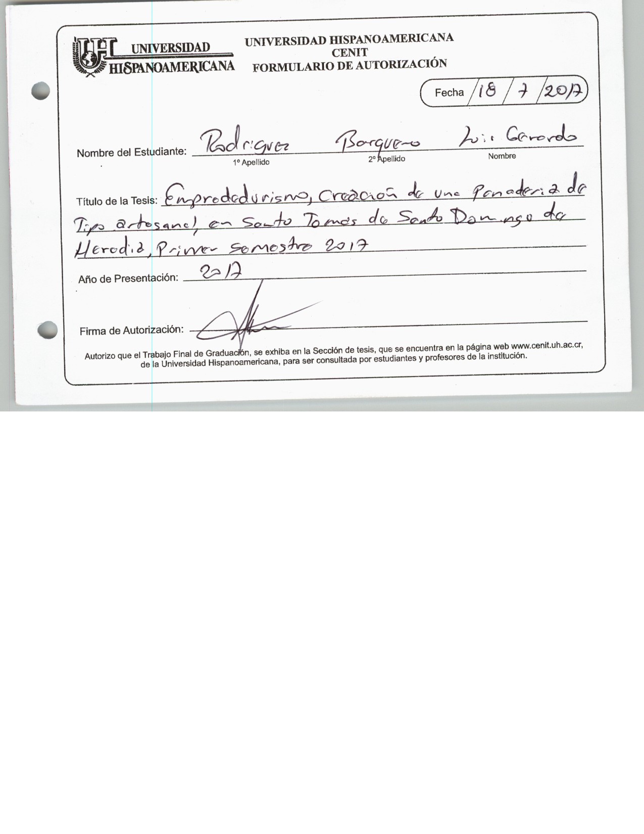 Emprendedurismo creación de una panadería de tipo artesanal en Santo Tomas de Santa Domingo de Heredia, primer semestre 2017