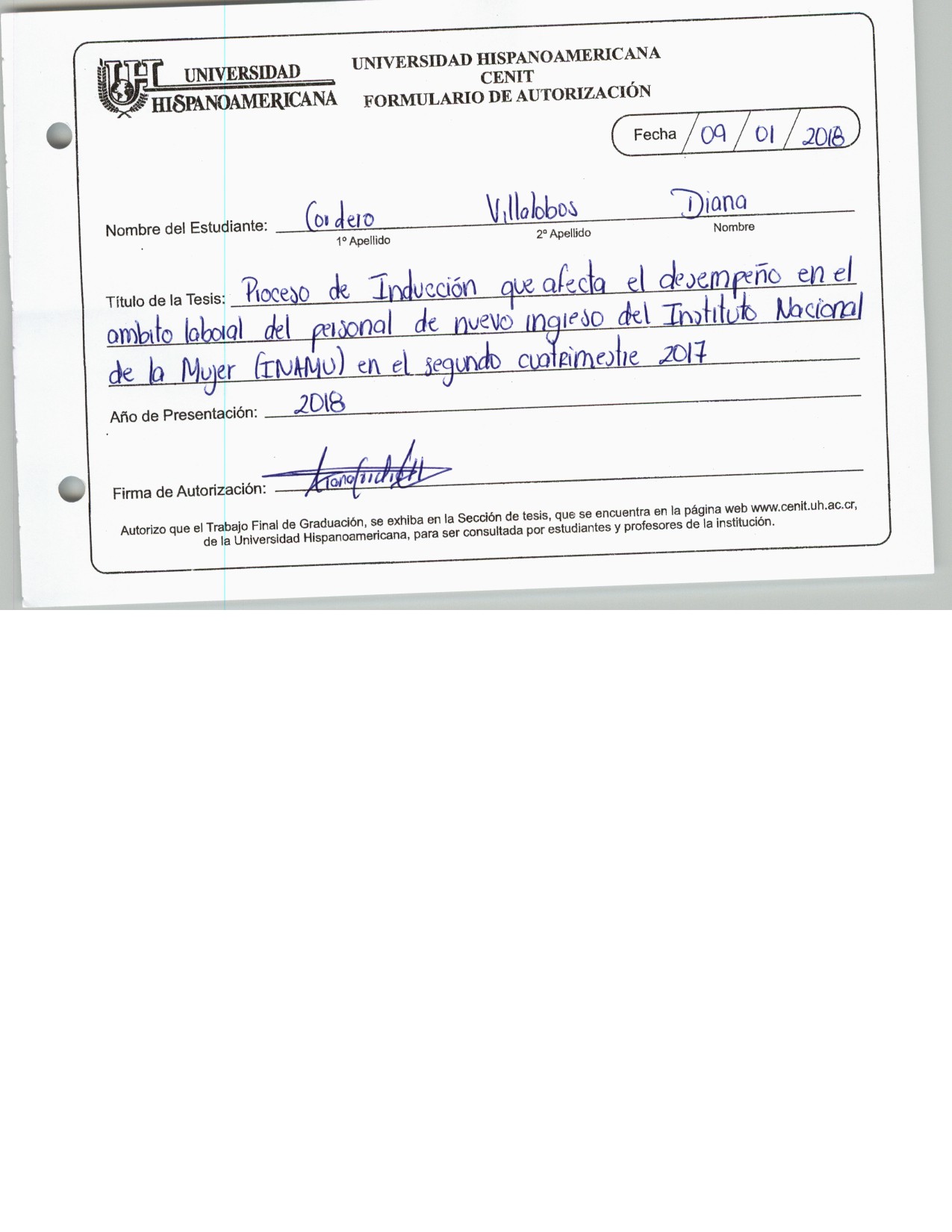 Proceso de inducción que afecta el desempeño en el ámbito laboral del personal de nuevo ingreso del Instituto Nacional de la Mujer (INAMU) en el segundo cuatrimestre del 2017