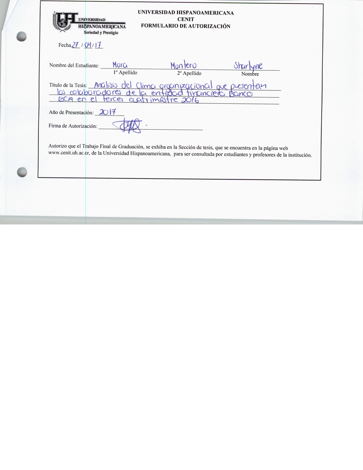 Análisis del clima organizacional que presentan los colaboradores de la entidad financiera Banco BCA, en el tercer cuatrimestre de 2016