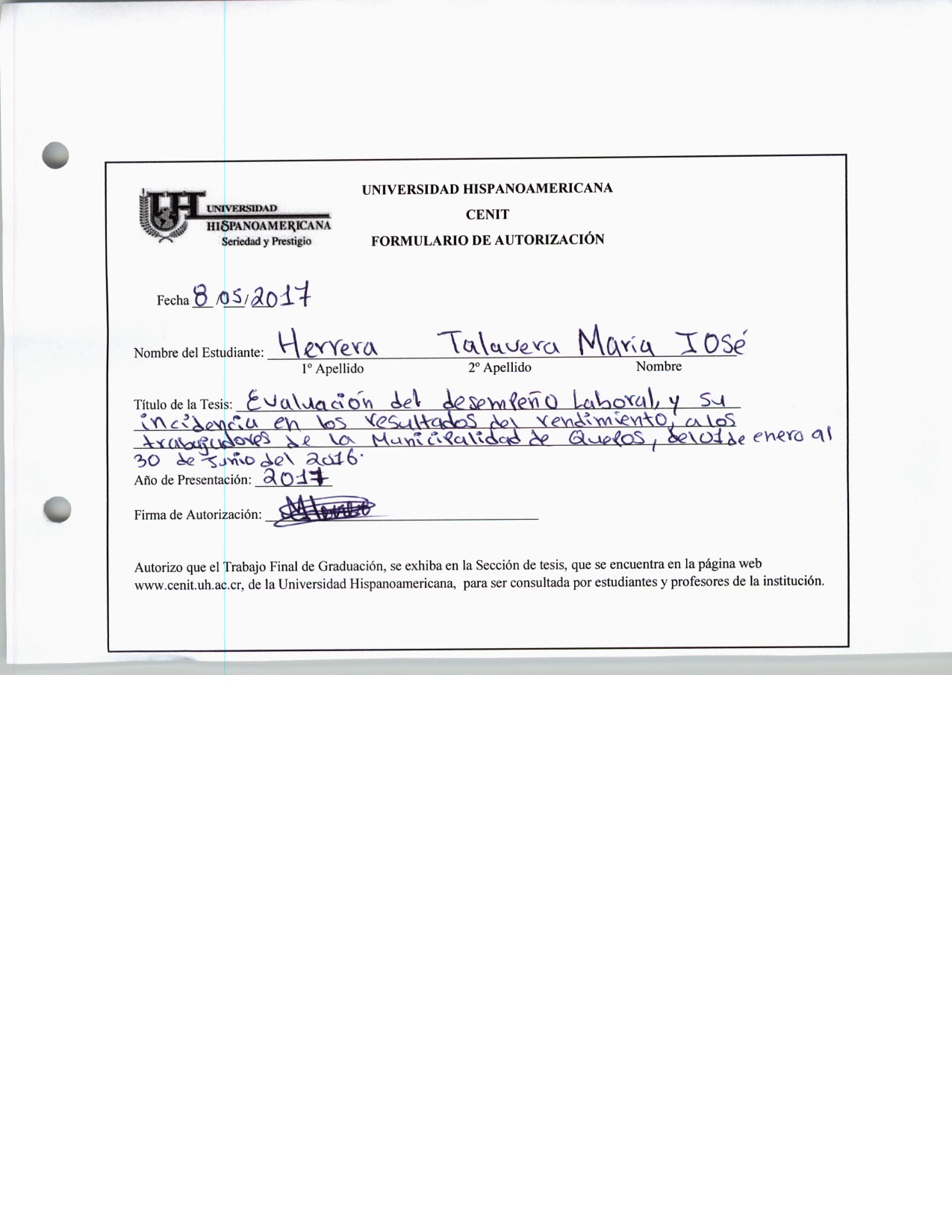 Evaluación del desempeño laboral y su incidencia en los resultados del rendimiento a los trabajadores de la Municipalidad de Quepos, del 01 de enero al 30 de junio del 2016