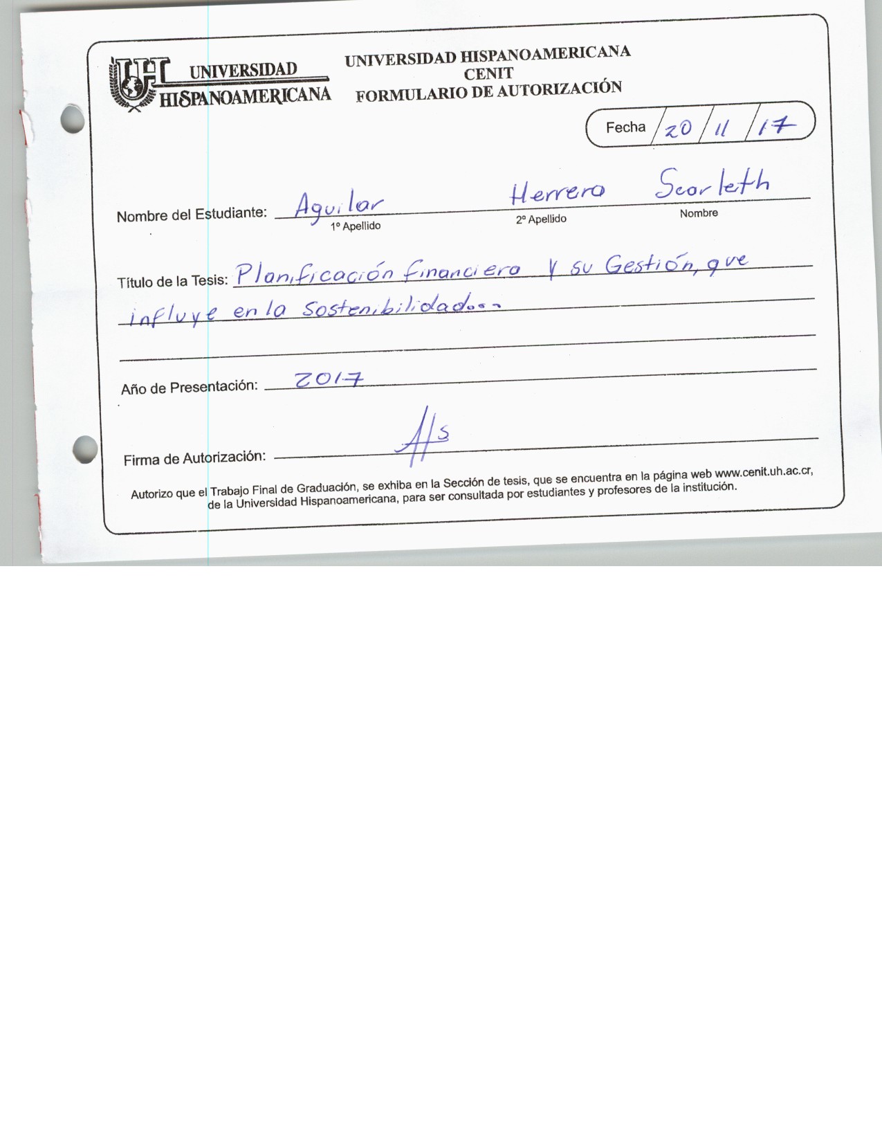 Planificación financiera y su gestión que influyen en la sostenibilidad del centro diurno luz de amor para adultos mayores de Puntarenas, durante el período 2016-2017