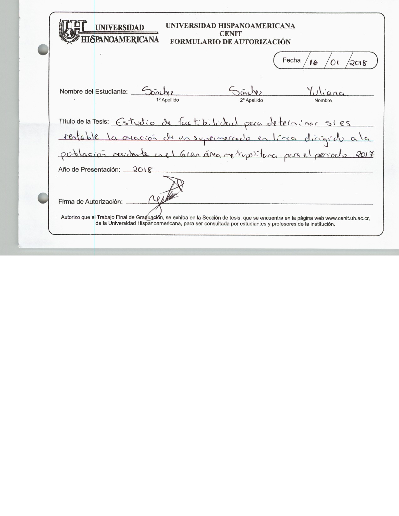 Estudio de factibilidad para determinar si es rentable la creación de un supermercado en línea dirigido a la población residente en el gran área metropolitana para el período 2017